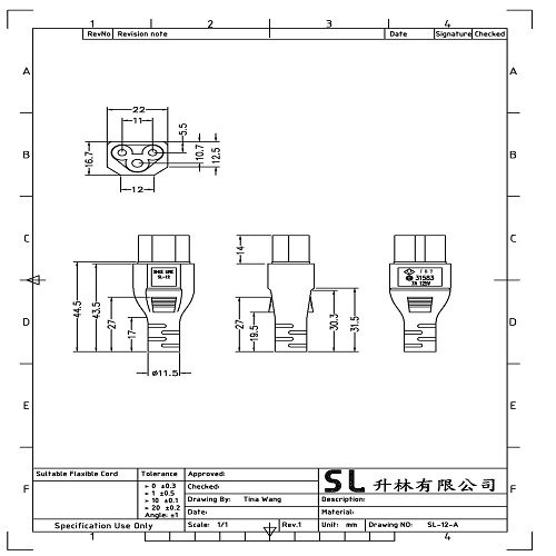 適用插頭: SL-1 (台規電源線) SL-2 (台規電源線) SL-205 (台規電源線)