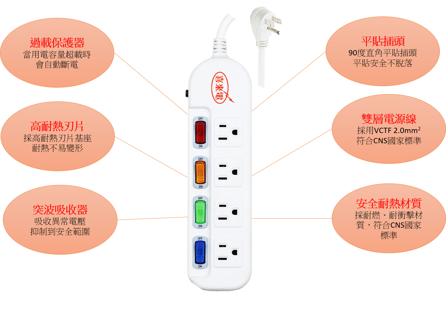 防突波雷擊4開4插3P延長線