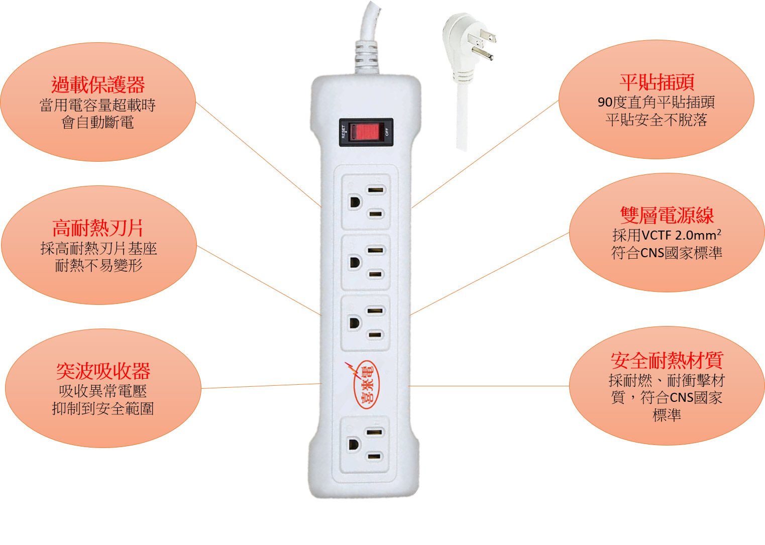 額定規格:AC 125V 15A 1650W MAX